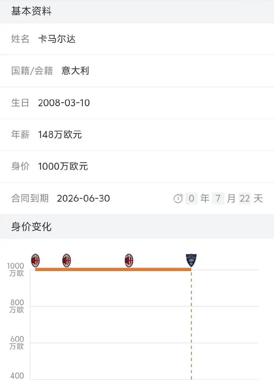 原文列出了多位球员,有意甲联赛的,也有西甲和法甲的都是年龄相仿的球员,大家在几年之内身价都是上涨趋势,当然没涨的人家也不可能贴出来,为了支持观点人家肯定会找支持自身观点的论据,论据有片面性,但他所说的内容并不片面,卡玛尔达在15岁就名满意大利了,一直都是米兰全村的希望,可是两年过去了,卡玛尔达到底如何呢?