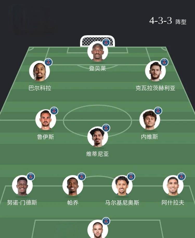 巴黎队中杜埃、李刚仁确定因伤无法出场,扎巴尔尼红牌停赛。登贝莱和法比安-鲁伊斯刚刚伤愈上一轮联赛中都已经替补出场,本场是否首发需要看恩里克临场安排。预计大巴黎的首发阵容433。